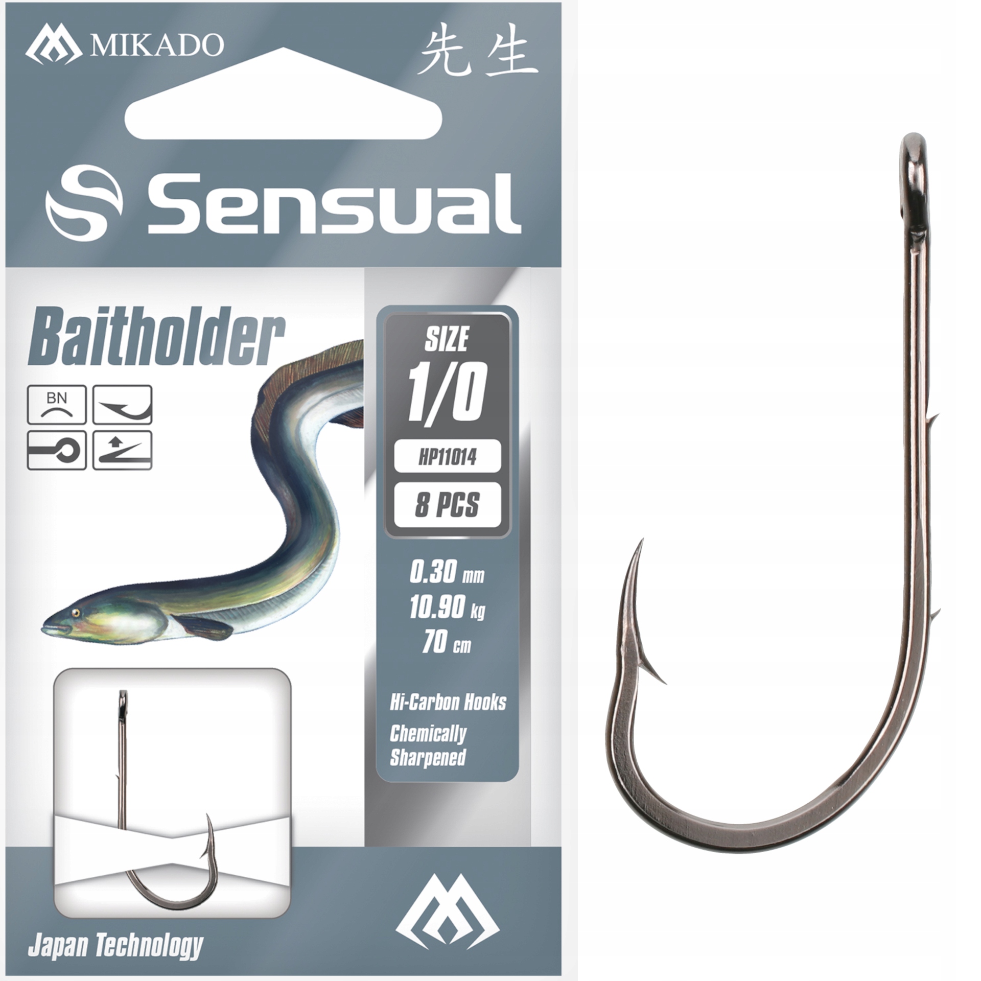 Bardzo ostre, kute haki węgorzowe z oczkiem oraz dwoma zadziorami podtrzymującymi przynętę na przedłużonym trzonku. Doskonale sprawdzą się przy połowie węgorzy i miętusów na przynęty pochodzenia zwierzęcego takie jak rosówki, dżdżownice, filety oraz podroby.